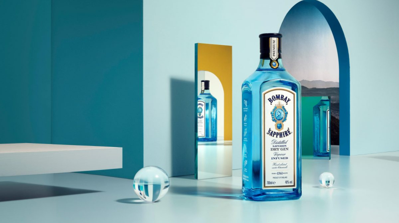Bombay Sapphire bola prvýkrát uvedená na trh v roku 1987 a jej názov je inšpirovaný legendárnou modro-fialovou sapphire z Britského Ceylonu (dnešného Srí Lanky), ktorá sa nachádza v Smithsonovom inštitúte. Značka bola pôvodne spustená ako Bombay Dry Gin, ale bola premenovaná a repackovaná do ikonického modrého obalu.