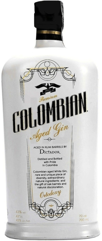 Dictador Colombian Aged Gin je exkluzívny gin z Kolumbie, ktorý sa vyznačuje jedinečným procosom zrenia v dubových sudoch, ktoré boli predtým používané na zrenie rumu Dictador. Tento proces dodáva ginu hĺbku a komplexnosť, čo sa prejavuje v jeho jemnej, bohatšej a plnejšej chuťovej profilovej strane.