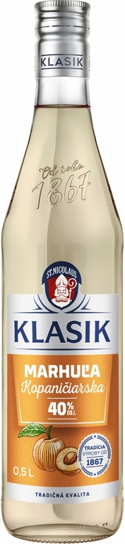 Kopaničiarska Marhuľa od renomovaného slovenského výrobcu ST. Nicolaus je tradičný destilát, ktorý si získal srdcia milovníkov kvalitných ovocných liehovín. Tento nápoj je vyrobený z kombinácie obilného liehu, marhuľového destilátu a starostlivo vybraných aróm, čím ponúka dokonalú harmóniu chutí a vôní.