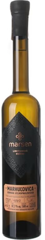 Marsen Marhuľovica Veľkopavlovická 42,3% 0,04l je exkluzívny destilát z limitovanej edície, ktorý patrí do kolekcie unikátnych odrodových destilátov. Táto degustačná miniatúra je ideálna pre milovníkov tradičných slovenských destilátov. Marhuľovica má typickú chuť a vôňu marhúľ, čo ju robí veľmi príťažlivou pre tých, ktorí si cenia autentickú chuť ovocia.