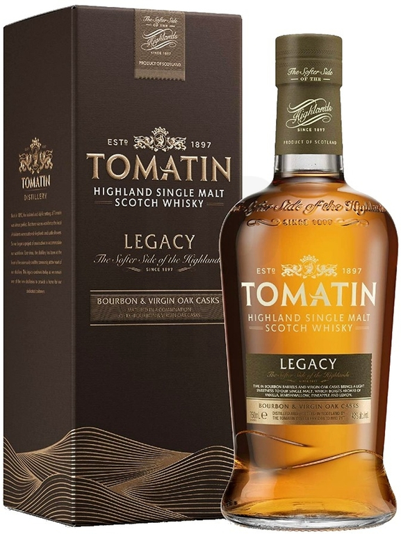 Tomatin Legacy je whisky bez udania veku, ktorá bola vytvorená ako oslava dlhej tradície destilérky Tomatin. Táto pálenica sa v 70. rokoch stala najväčšou škótskou palírňou a výrazne prispela k rozvoju okolia. Použitie panenských dubových sudov je v škótskej produkcii stále pomerne netradičné a dodáva tejto whisky svieži a moderný profil.